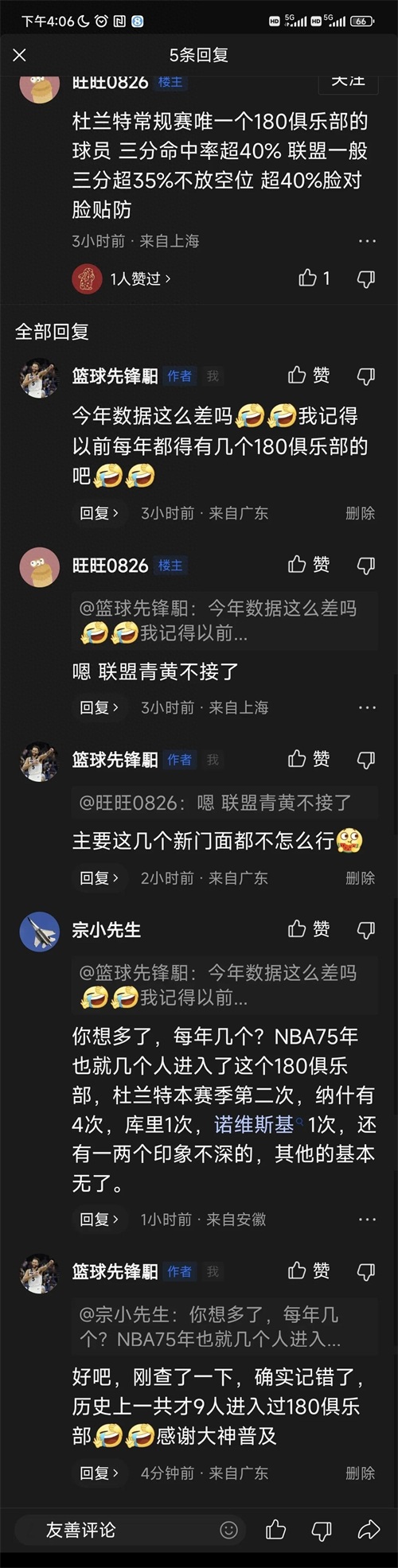 凭印象说了句:今年数据这么差吗?我记得每年都有几个180俱乐部的吧。