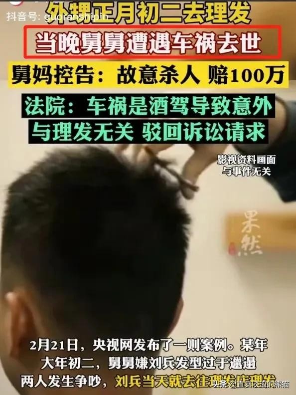 近日,一则新闻登上网络热搜,“外甥正月初二剃头,舅舅当晚车祸身亡,舅妈控告外甥赔偿100万,被法院驳回!”新闻一出,引起广大网友的讨论,大家心里都会有个疑问?正月里到底该不该剃头?