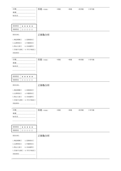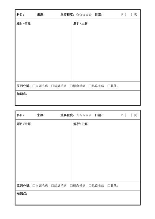 新学期开学在即,分享4种常见格式的错题本,可直接打印,供有需要的学生或家长下载使用。