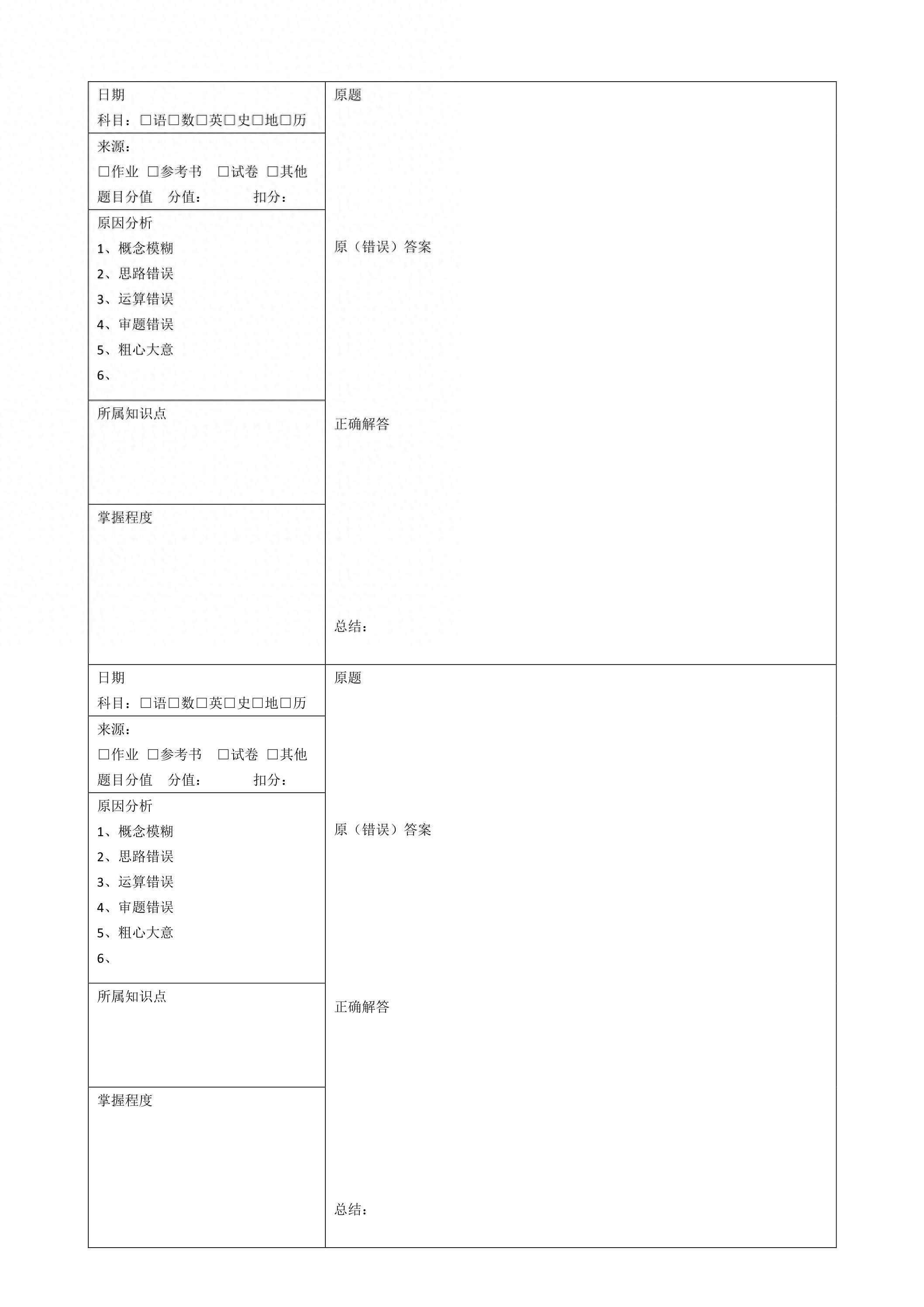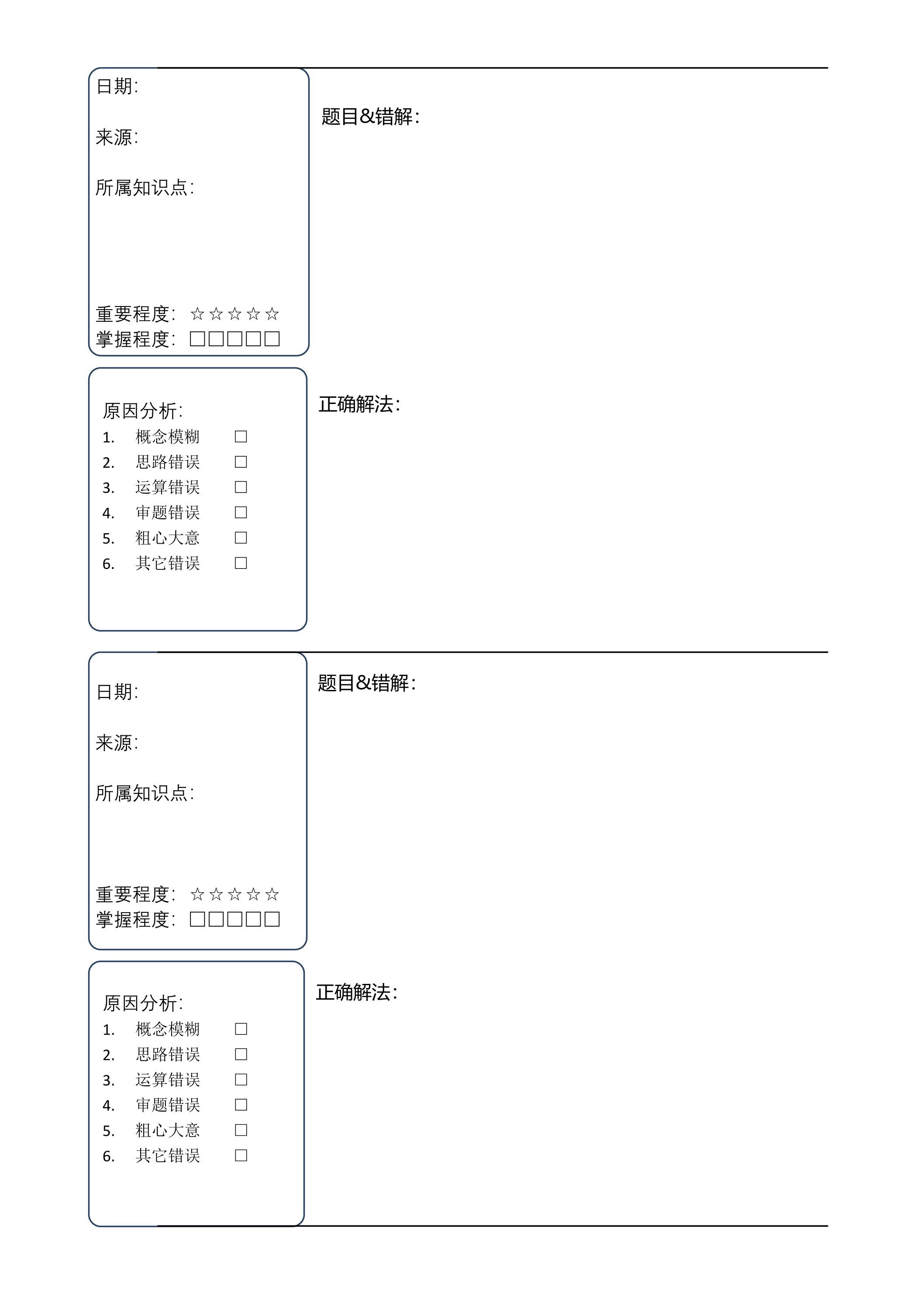 如果需要编辑word版,可在电脑端打开下面的链接下载:中小学专用A4版错题本