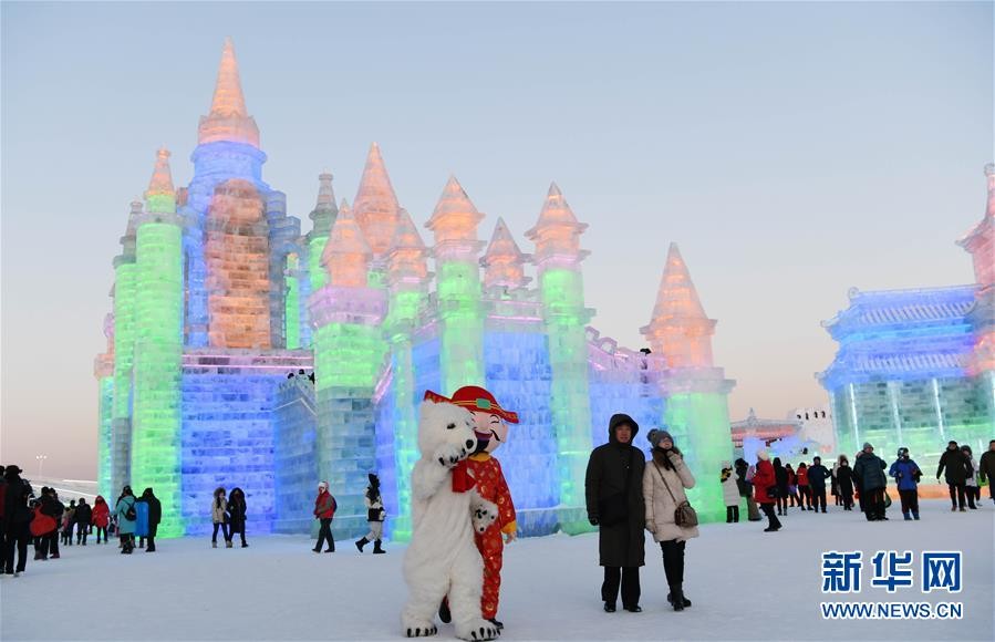 1月5日,游客在第35届中国·哈尔滨国际冰雪节主会场之一哈尔滨冰雪大世界园区游玩。 新华社记者 王建威 摄