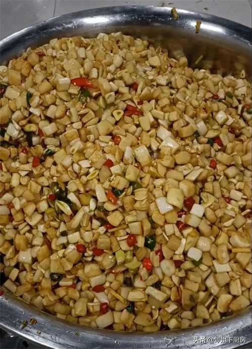晾晒一天以后呢,直到萝卜的表皮发蔫儿收紧,咱们倒在盆儿中就可以准备腌制。怪不得超市的咸菜卖的贵呢,的确也不太出数,加入姜蒜片,辣椒圈,酱油、生抽辣椒呢可以根据自己的吃辣程度来加多加少,没有固定的比例啊