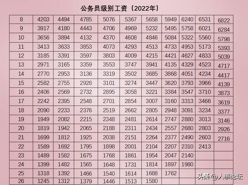 附图一:2021年公务员级别工资表(2022年落实)