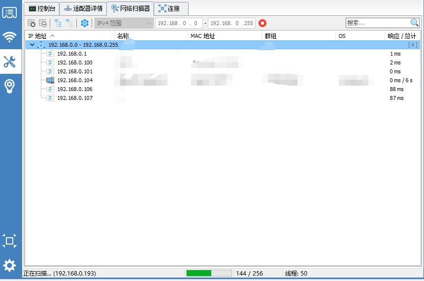 3、最常用的,通过快速扫描工具,扫描局域网内已经使用的IP地址。