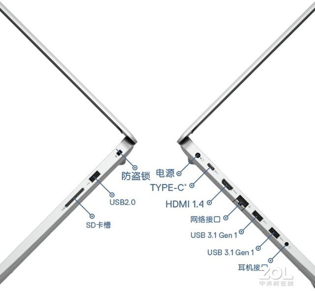 14英寸的灵越5000系列机身仅重1.65kg左右,厚度仅为18mm,拥有齐全的接口配置。其中不乏标准的网口、HDMI 1.4视频端口、SD卡读卡器等,给用户带来极大的便利,无需再额外购置扩展坞。