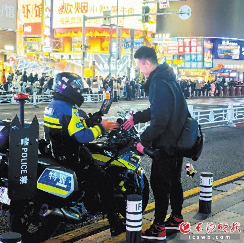 “我站在那儿,看见你执勤的样子特别帅,就悄悄给你拍了张照片……”2月18日晚,摄影爱好者朱健雄如往常一般“扫街”,行至黄兴铜像广场附近时,一位特警英姿飒爽的执勤身姿映入眼帘。刹那间,他迅速按下快门,将画面瞬间定格,收到照片的特警一脸惊喜。