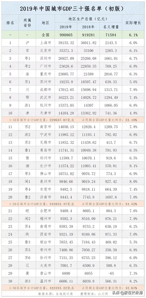 终于来了!2019年中国城市GDP排名公布!