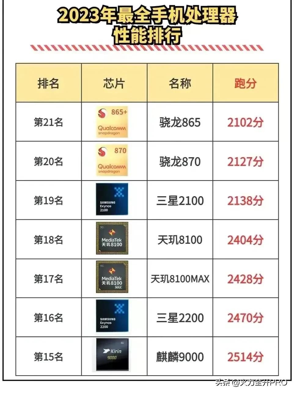 而今年最惊艳的中端芯片骁龙7+Gen2则是排名在第11位,力压骁龙888和888+