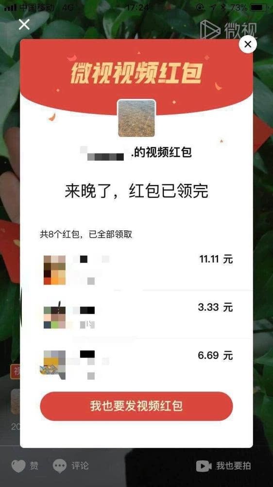 除了发红包功能外,用户可以分享“讨红包”视频,获得好友和微信群内打赏。