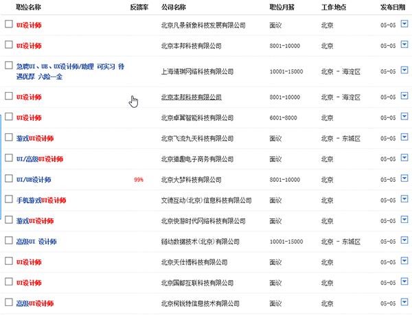 根据智联招聘相关数据,国内UI设计师的人才缺口在10万左右。1年过去了,有新的职位产生,但也有更多的量产的UI设计出现。小编有朋友在互联网公司做HR,公司招1个UI设计师,有将近500分简历发过来。