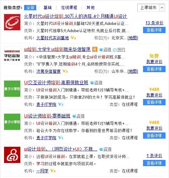 目前国内UI培训班线下的30家左右,线上的20家左右,以三个月为一个培训周期。经小编实际调查,一个班的人数大概在40人左右。一个季度量产的UI设计师就有4万人左右。