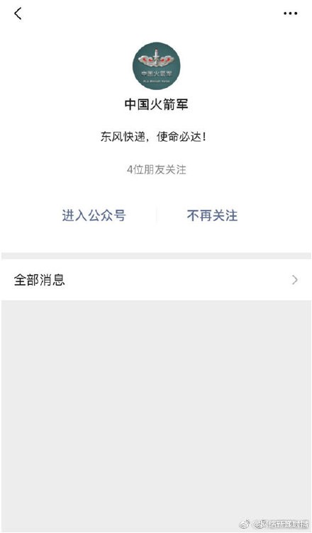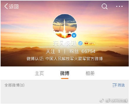 【“东风快递”全网唯一“寄件”窗口正式上线了】2月14日,在网友中拥有超高人气,被戏称为“东风快递”的中国人民解放军火箭军官方微博@中国火箭军、@东风快递 官方微信(ID:中国火箭军)同步正式上线了。东风快递,使命必达!使命源自责任,服务覆盖全球,“员工”时刻准备处理每份订单,只为更高效。24小时,全年无休,不计成本,只为节省您的每一秒钟。“东风快递”的服务宗旨是,以射程求发展,以精度求信誉。开业以来至今零投诉无差评,坚持以优质的服务说服每一位客户。