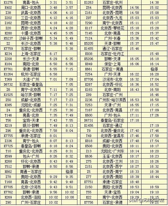 石家庄最新列车时刻表出炉,快转给需要的TA!