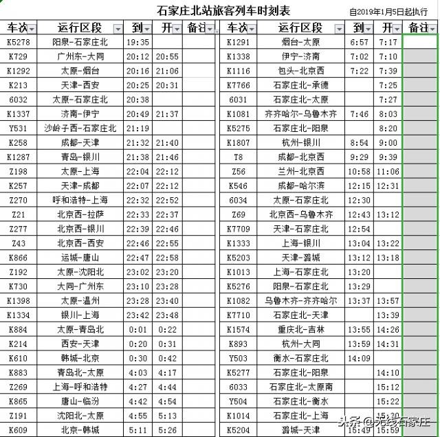 石家庄最新列车时刻表出炉!2019年1月5日起实行!赶紧收藏~