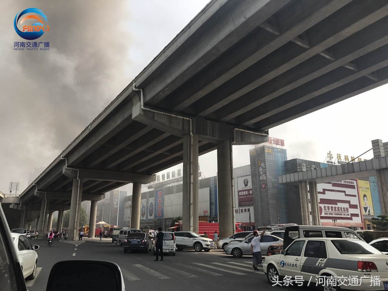 【中原百姓广场火灾复燃 周边道路通行受阻】