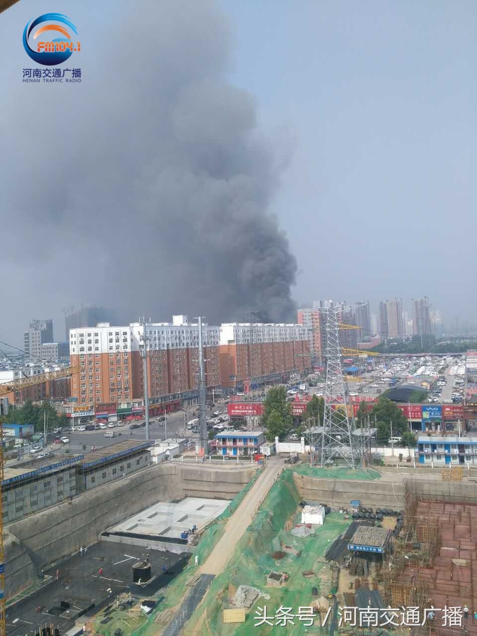 中原百姓广场浓烟滚滚 周边道路通行受阻