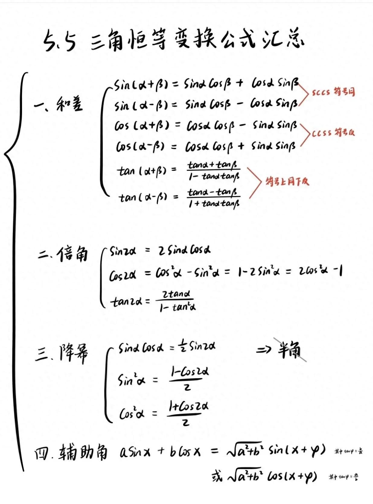 三角恒等变换公式汇总