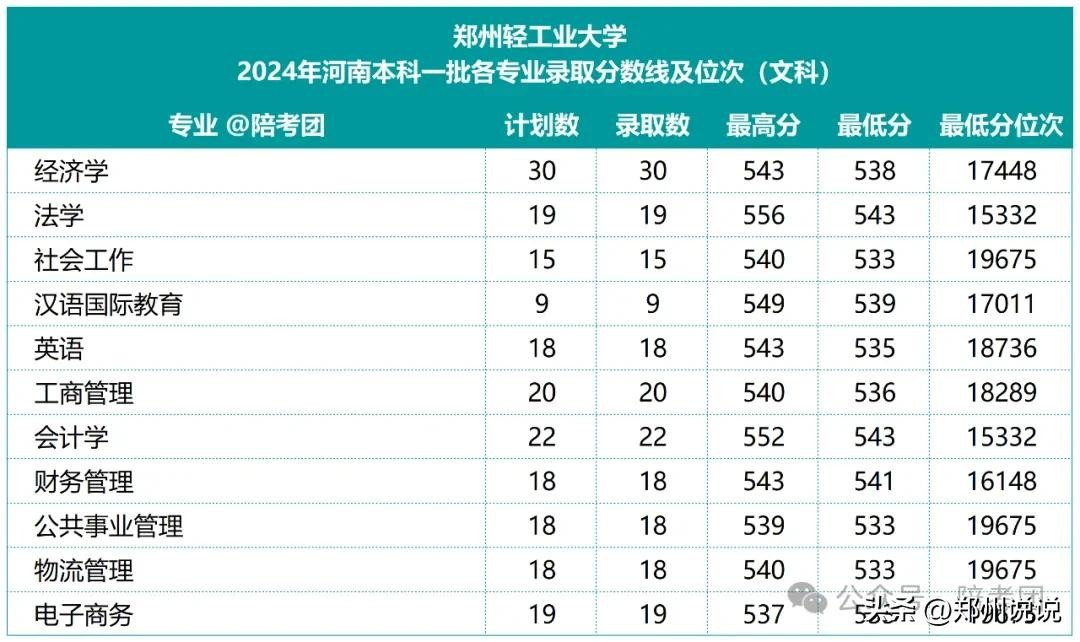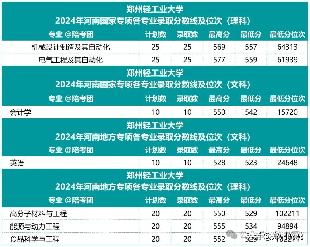 郑州轻工业大学2024年河南各专业录取分数线及位次