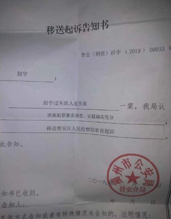 福州“赵宇案”最新进展:赵宇被以过失致人重伤罪移送检察院
