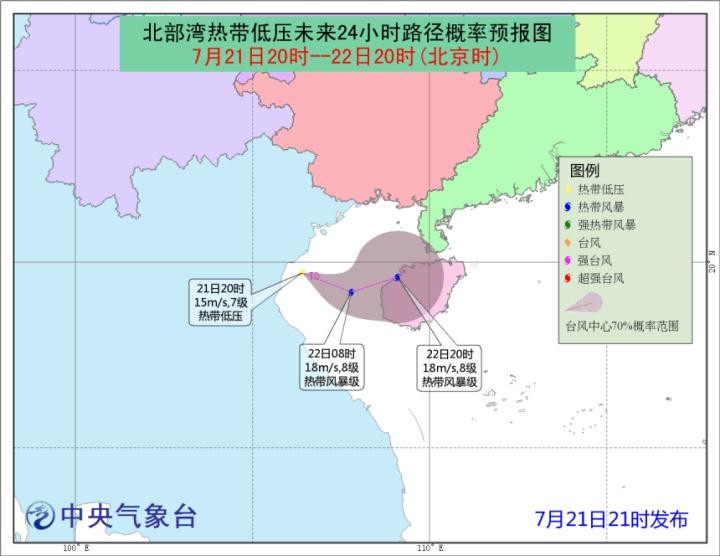 7月21日下午,9号台风山神的残余低压进入北部湾,并开始迅速发展。从云图动画和底层扫描可见,这个低压旋转迅速,且有7级左右的风力。这标志着,“山神”台风的残余云系已经重新加强为热带低压,并很可能复活成为台风。