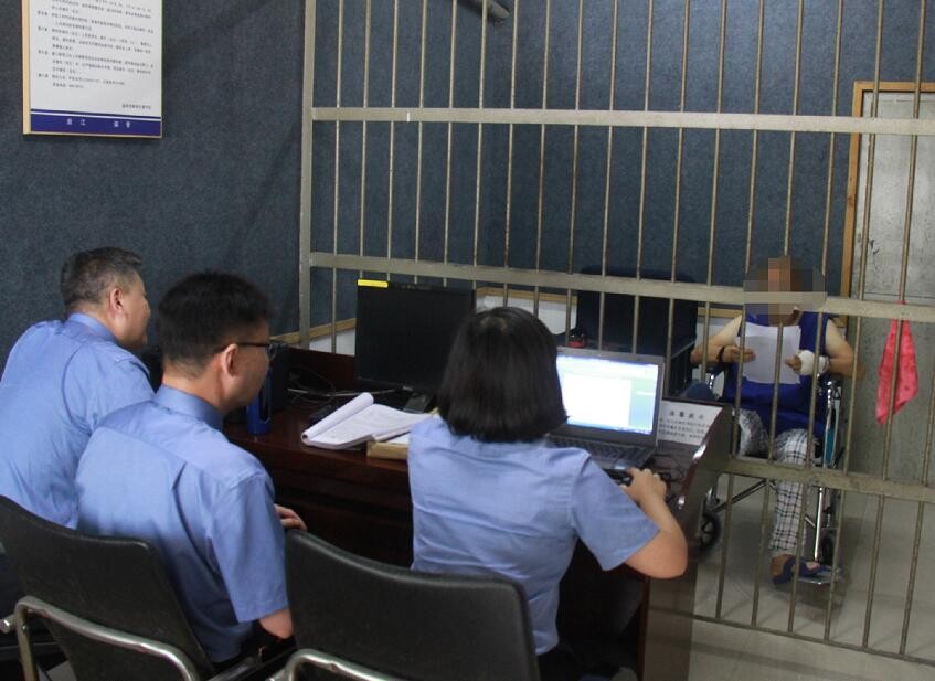 图为犯罪嫌疑人戴某某被提讯(瓯海区检察院供图)
