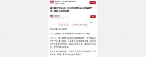 自从10月29日,726房事件不断全网发酵,就牵引着广大人民群众的心,但一直没人知道真相,也没有相关权威部门发声,目前只有富士康集团官网发声辟谣。