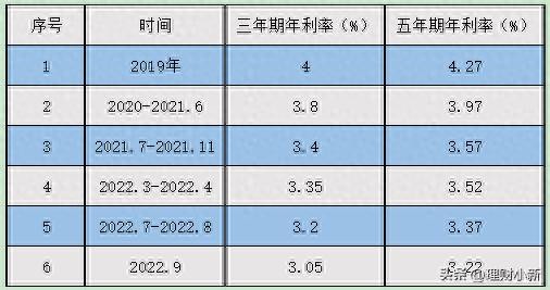 2022年9月,三年期的年利率为3.05%,五年期的年利率为3.22%。