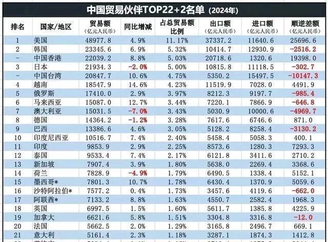 2024年中国对全世界贸易是多少呢?中国对外贸易总计是61622万亿美元,贸易“顺差”近1万亿美元;美国全世界贸易是5.5万亿美元,贸易“逆差”近1万亿~1.1万亿美元;中美这样一对比,说明一个问题,中国是世界工厂,供应全世界贸易额自然就大。中国投资世界各地矿藏,能源,运回来加工成产品,再为世界人民创造商品,中国有贸易顺差是正常的。