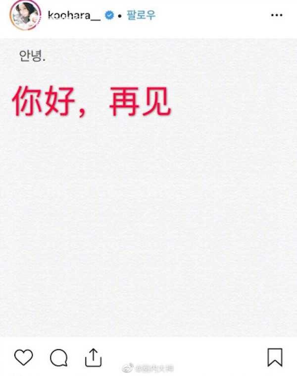 韩国女星具荷拉患抑郁症在家自杀 曾发文“再见”向粉丝告别