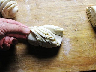 9. 将拧的两端收口向下,做成花卷。