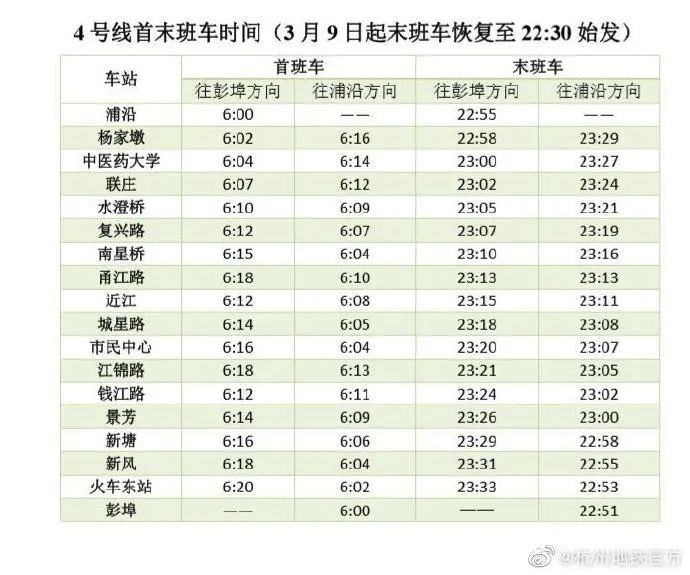 明起,杭州地铁末班车时间调整