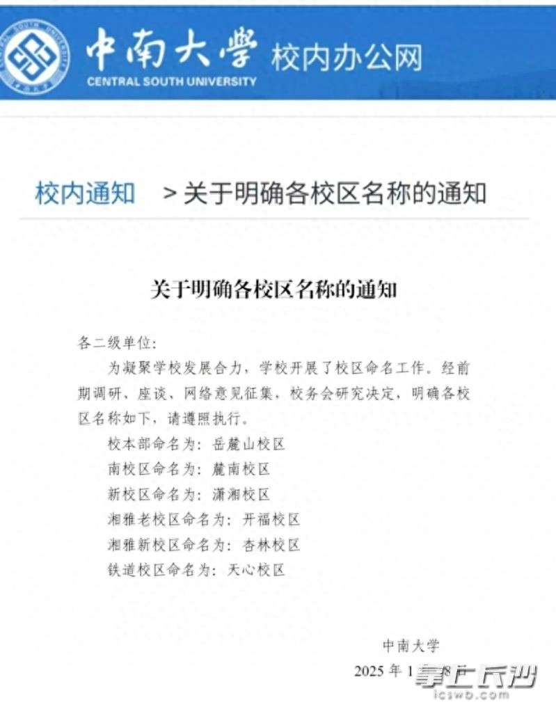 重磅!中南大学六大校区改名了