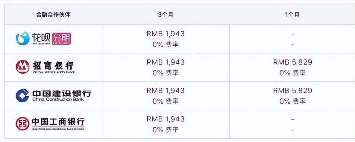 苹果官网参加教育优惠,支持分期的银行xyk及期数情况: