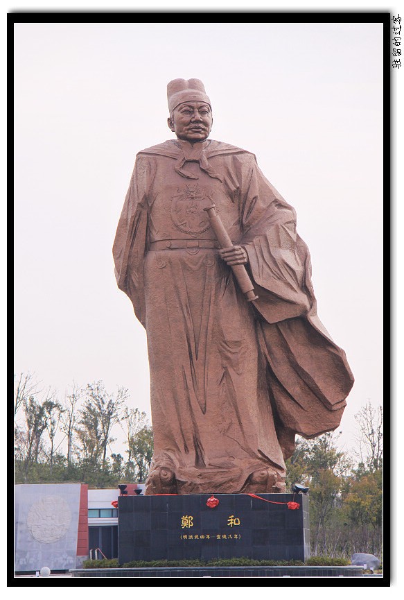中央景观广场,是公园的点睛之作,喷泉最高可喷出高达62米的水柱,既寓意郑和波澜壮阔的62年人生,又让参观者感受到喷泉舞蹈的魅力所在。在纪念馆之前,只见郑和全身铜像高18米、重50余吨,为国内最大。郑和手执航海图,昂首挺立在长江口当年七下西洋的起锚地,高大而典雅,宏伟而凝重。