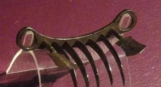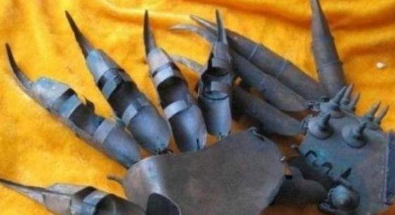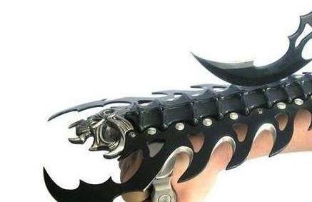 这把兵器是非常著名的一件暗杀兵器,它的主人是一位国王,关于这种暗器的佩戴方式,历史中并无过多的记载,从外形上来看,应该是佩戴在手臂上,趁其不备暗杀敌人。