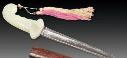 别看这把剑非常短小,但比例大小制作精良,是最为典型的比恰瓦式,小巧杀伤力也不小。剑身的样式依据犀牛角启发,向后弯。而这把剑最为贵重的部分当属剑柄,是用罕见的白玉雕刻完成,好剑配好玉。这把剑一旦沾上血整个玉本身就会染成红色,非常靓丽鲜艳,是一把嗜血的宝剑。