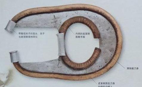 有点像大饼铅锤的奇异小刀,是一件行刺利器。上面有一处指环,佩戴的方式可以戴在中指上,藏于手掌中很难发现。一般女子使用,这是女子专门用来对付色眯眯的皇帝行刺的武器,在与皇帝近距离接触时,趁其不备抹杀其颈部,很轻松的割断皇帝的喉咙使其毙命。沃尔人称之为“指刀”。