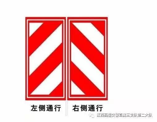 2、左侧通行和右侧通行 这种标志一般出现在道路一侧断交施工或事故堵塞路段,在高速公路上在距现场2KM的地方就会有指示标志,国道省道上在距现场500m就会有指示标志,隔离板上有白底红色箭头或蓝底白色箭头,要注意的是:箭头指向左侧可以靠左侧行驶;箭头指向右侧可以靠右侧行驶。当然车速要放慢一些,以保证行车安全。
