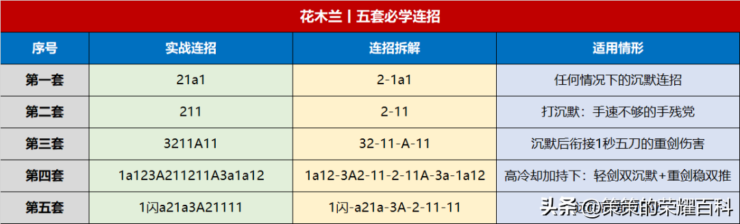花木兰全部连招顺序口诀简单(花木兰必学五套实用连招)