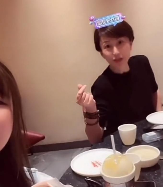 从杨帅分享的视频来看,她先是在直播间像往常一般与“家人们”聊天,随后摄像头一转,隆重请出嘉宾“三妈”陶虹,并逗趣称“帮忙卡个灯牌,点关注”!当镜头Take到自己时,陶虹面带微笑单手比心与侄女粉丝们打招呼;结合视频背景判断,像是在餐厅里吃饭,旁边还有人。