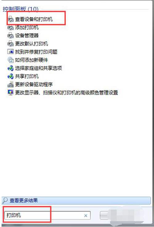2、点击“开始”,输入“打印机”,回车。打开查看打印机窗口。