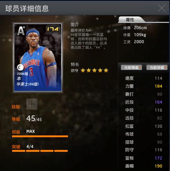 2000精华的庄神光从面板数据上看还是不错的,但是游戏体验却又是一回事了,站扣不够硬,护球也差到极点,但是作为一名蓝领和篮板手还是不错的。