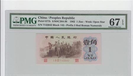 很可惜你这一张第三套人民币一角券就是普通的品种,全新未流通品项的生产价值也就在几十个月而已,然后你这一张更没有那么高的收藏价值。至于一元拖拉机目前来说也有一些比较特殊的品种,最主要看他们的两个水印不同,如果是古币混合水印来,他的市场价值会越高,五星水印价格会低很多,当然拖拉机一元也有一些荧光品种,但是你这样一张品相其实有没有眼光也没有任何意义。