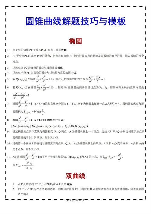 为此今天把已经整理好的《高中数学圆锥曲线解题技巧与模板》分享给大家,高中三年有这一份就够了!