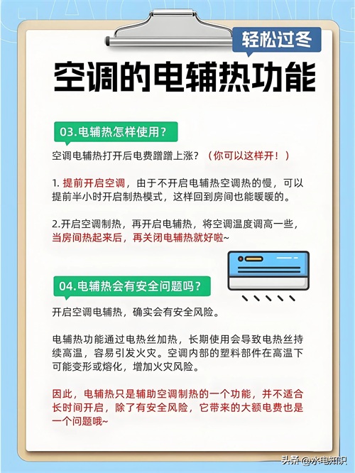 除此之外,电辅热只是辅助空调制热的一个功能,并不适合长时间开启,除了有安全风险,它带来的大额电费也是一个问题哦!