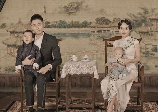 照片中张嘉倪一家人穿着民国风的服装,连背景都非常的复古,很多人看到之后,都被他们一家人的颜值给惊艳到了,丈夫买超抱着大儿子,而张嘉倪抱着刚出生的小儿子。