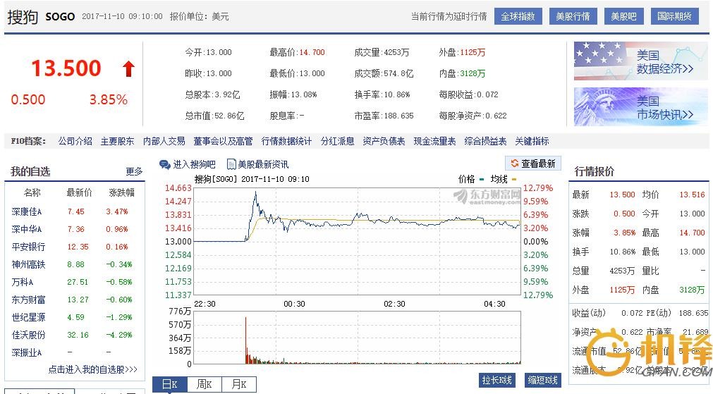 搜狗昨夜登陆纽交所 市值超50亿美元