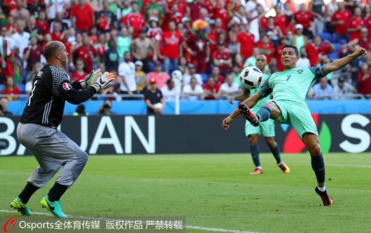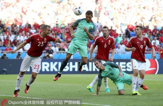人民网北京6月23日电 北京时间6月23日00:00,欧洲杯小组赛F组第三轮,葡萄牙3-3战平匈牙利。第19分钟,格拉远射首开记录;第42分钟,纳尼为葡萄牙扳平比分;下半场,双方展开进球大战,第46分钟,茹扎克任意球破门,3分钟后,C罗接马里奥直传脚后跟破门再次扳平比分;第54分钟,茹扎克起脚远射打在纳尼腿上变线入网,6分钟后,C罗接刚刚替补出场的夸雷斯马助攻梅开二度,将比分锁定为3-3。此轮战罢,匈牙利居F组头名,静待E组第二名产生;葡萄牙则以小组第三出线跻身上半区,下轮将与克罗地亚交手。