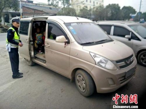 广西幼儿园负责人驾驶7座车送28名幼儿回家被查。 李宗亮 摄