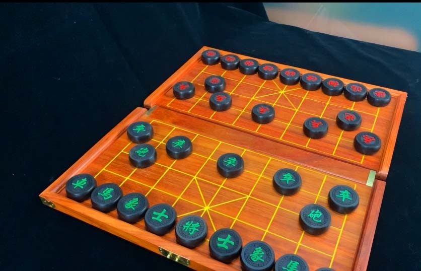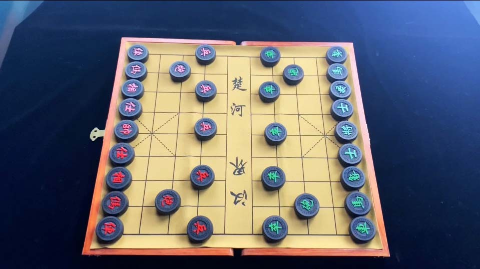 棋子就摆在交叉点上。棋子中部不画线的地方称为“河界”,两端中部有斜线的地方叫“九宫”。